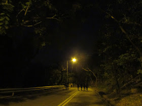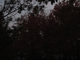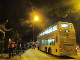 天色開始轉暗,直至相機也攝不到紅葉後始下山。穿過燒烤場及保良局度假營,忽然看到路邊大排長龍,原來港鐵為疏導周末賞楓的人群,特別設立臨時巴士站,提供加班車往朗屏站,不過前面約十分鐘步程的大棠巴士站,仍有正常班次出元朗市區及朗屏邨。抵達巴士站時正好有巴士在上客,故立即上車,結束半天遠足兼賞楓之旅。