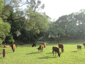 圓墩營草坪上牛群正一起吃草:
