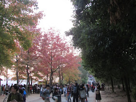 楓香林裡人流如鯽: