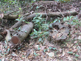 那些樹幹架得很整齊,附近還有一小片廢田,究竟這裡是否有座廢屋?