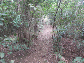 經過大菴山時要穿過一片荒田,這段路應很久無人走過,年初還是暢通無阻,但是日已被野草重重遮擋,還有塌下的野芋,路況難以通行,結果要把它強行壓在地上,才得以穿越。不過難走之處只是十幾米,再經過一些廢屋後就上石磴古道,然後就上至一個疑似四叉路,北路經245山頭落大菴村,東路落小菴山附近(但難以通行),南路上走馬崗。轉入南路,很快要上一段又滑又相當斜的山徑,踏腳位亦不多,要手腳並用之餘,有時更要扶著泥坡上攀,要命的是那裡沒甚轉角位,一失足很可能成千古恨--其實那段小徑相當危險。