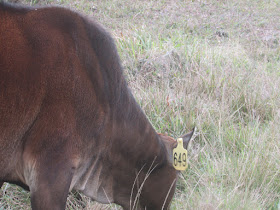 在山上吃草的牛群,耳上都繫上黃色編號,相信是政府用作紀錄用途: