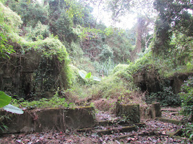 水泥徑的另一邊是上走馬崗的路,先經一片廢田,但田上的水泥徑已被野草及大野芋封閉,要強行穿越: