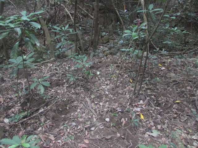 經烏洲塘東面的谷地,沒有廢屋,只餘零散石堆,而且滿是野豬翻土的痕跡: