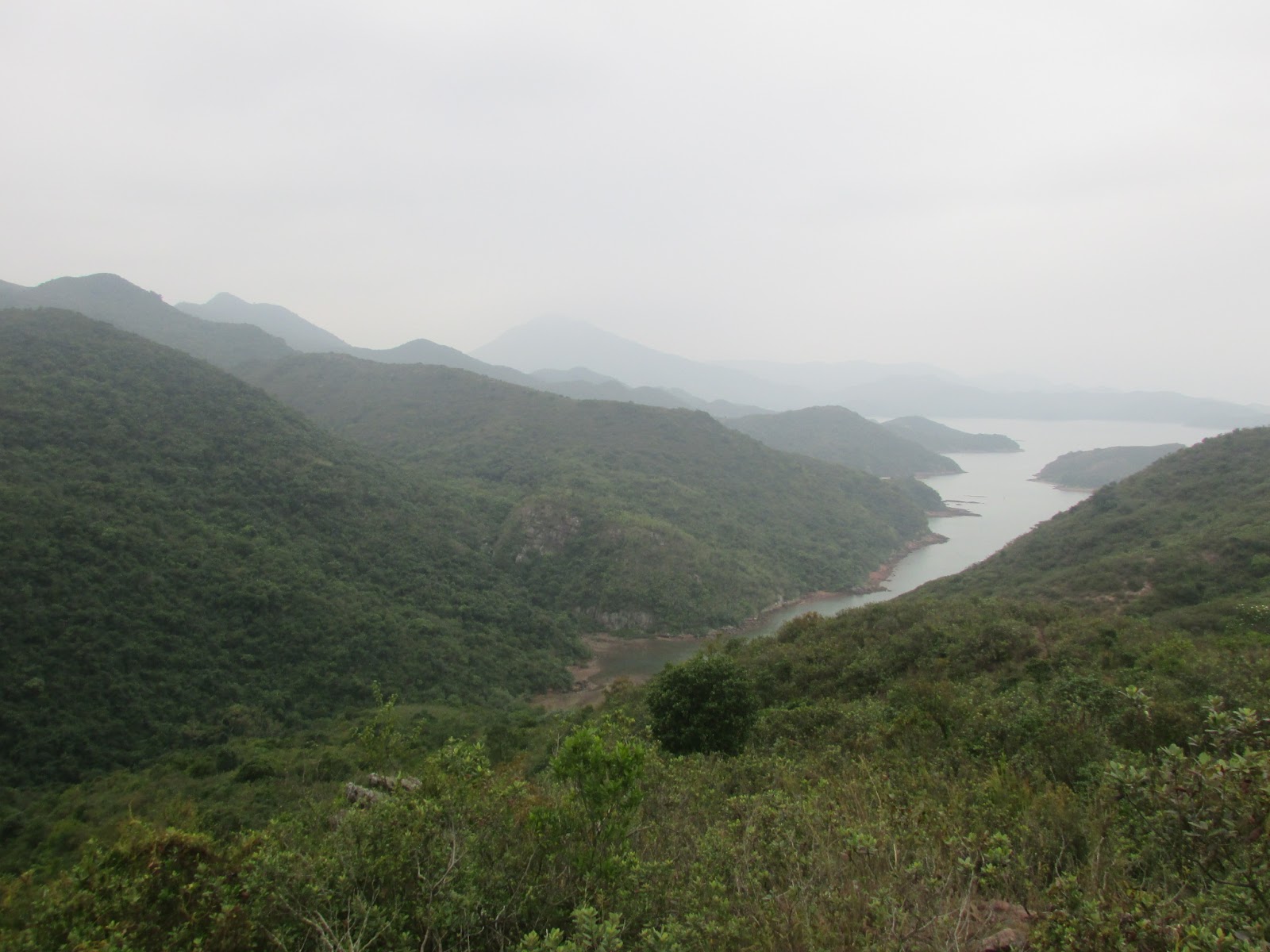 探過老虎笏,依隱蔽山徑接小徑上至近C2621標距柱,部分位置小徑還是相當明顯,但前走幾步,路胚突然消失,然後又再明顯,如是者重複了好幾次,雖然只是五百米距離,不過已用上半小時。經三門山、鵝髻頂到小滘坳(環湖徑、小滘村及黃竹角半島的四叉路口),此時已是沒有午飯吃的午飯時間,亦是郊野徑的中段,遊人越來越多。
