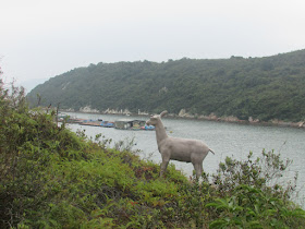 經主壩、副壩一帶的馬路入船灣淡水湖郊遊徑山路,在C2625標距柱附近的山坳有小徑過老虎笏,西面的灣篤停著一些已荒廢遊船,之後沿海邊「綑」而東面的養珠場附近,路邊有不少紅樹林生長,初段岸邊的路段還是明顯,不過因潮漲關係,最後要涉水而行,水深更是及膝。到東面的灣篤,看到一座廢屋遺址,只餘不到半壁牆身,未知本身的養珠場是否已被拆掉,所以再無往前細探,最後翻看地圖,發現我們原來根本沒到過養珠場。笏中的漁排還有人住,當我們在岸邊拍攝時,漁排裡的狗隻不停地吠叫。另外岸邊及類近的山坡上發現有些馬、羊等動物雕塑,認真有趣。
