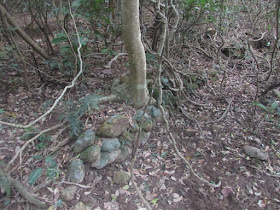 經烏洲塘東面的谷地,沒有廢屋,只餘零散石堆,而且滿是野豬翻土的痕跡: