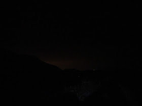 到達船灣淡水湖郊遊徑時天色已見昏暗,到大峒時更已全黑,可見三椏村路燈在亮起,而燈光最多的地方就是深圳鹽田港,因燈光反射至天空雲層的關係,使北面的天空出現一層橙色的輝光。最後就摸黑經苗田快速的回到烏蛟騰,抵達烏蛟騰時是七點十分,所以讓同伴先乘七點十五分的小巴離開,而坳仔不趕時間,加上要上廁所,所以就乘末班小巴回市區。