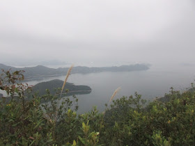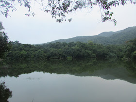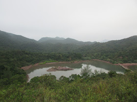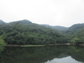 九點半到達大尾篤,隨即上船灣淡水湖主壩,第一次看見往主壩的馬路閘口是開著的。是日也是所謂的「保衛郊野公園日」,據說現屆政府很希望發展幾個巴仙的郊野公園,以增加房屋供應,但受民間強烈反對。反對原因十分多,包括水源問題、在山區發展難度太高、基建不足等等,但相信縱使真的發展郊野公園,最終成效仍是不大,一來近市區的郊野公園,附近早已變成有錢人家的居所,那些變成住宅的郊野公園,只會標榜成「背山面水」的別墅、豪宅,根本不是普通人的市場;二來不近市區的郊野公園,算為偏僻,香城人工時實在太長,如果住在郊區,平日加班後隨時要到十一、二點才回家,未到七點就要出門,留在家中的時間還不到正常人的八小時睡眠時間,難以吸引「打工仔」入住,受益者只是退休人士及新移民罷了。是日早上派出一些義工在近廿個郊野公園駐守,讓遊人用相框留影,再放上臉書等社交網站,坳仔也不忘到此先行留影。