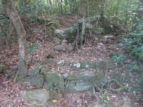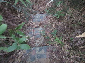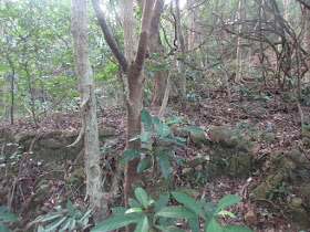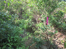 遇見野豬後不久,引進一小片小樹林,前方小徑已消失,而是一些石堆,不過正路卻在下面,相信如無引路帶下也找不到路。下牛過路途中仍間中遇上極密林地帶,而接近牛過路時是傳說中的迷蹤地帶,因為那裡有些草地之餘,更有不少歧路,但沿最多引路帶的小徑下走,加上一直的核對GPS位置,順利的下達牛過路廢村腹地。