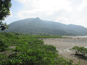 榕樹澳泥灘、紅樹林與呈錐形的「馬甲崙」山: