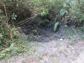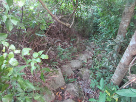 牛過路村只餘下一些荒廢田基及廢屋殘片,但連鄉議局的《新界原有鄉村名冊》中也不見其名,把該村更添一分神秘,相信早在上世紀初已荒廢了。然後就沿疑似古道,穿樹林下海下灣,臨到海下灣時還得經一處闊溪及草地,雖然大路近在眼前,但那片草地歧路眾多,且天色漸暗,還是有點迷失。幸好是日未夠三點就進入上擔柴山,否則到入黑後還在小路,必會非常危險。