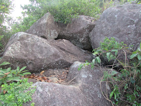 穿了一小時密林,終到擔柴山頂,三角網測站旁被石堆圍著: