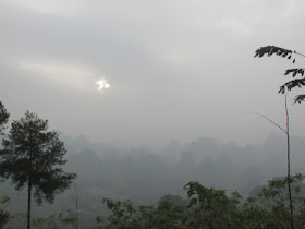 在三排瑤寨觀景台,因為位處山上,故身處薄霧中。一直逛遊,感覺就是差了一樣很重要的東西,因為那裡三年前才到過,當年觀景台上還有一些鮮艷的大牛角,不過現在卻被拆掉,而旁邊的吊橋也開始破爛,不宜通行,景區可謂明顯失修。三年前坳仔也曾到過連州及連南,不過只作為中途站,在國際大酒店住了一晚,即驅程往湖南寧遠縣遊覽文廟等景點。