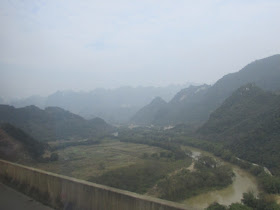 團隊為我們安排的旅遊巴是較高級的,不是因為座位較舒服寬敞,而是車廂較司機位高了五、六級樓梯。到深圳灣接載餘下的團友後,導遊隨即為大家介紹行程,可能喇叭聲量較小的關係,初時他的聲音真的難以聽得清楚,要十分留心的聽,直至向他反映才有改善。一如既往,在東莞麻涌讓我們「交水費」,在清遠午飯,在陽山一帶再讓我們「交水費」,然後就去參觀連南縣三排鎮的三排瑤寨,又稱「萬山朝王」。到達瑤寨前導遊還紛咐我們一句,就是不要亂給瑤族少女拍攝,據說會把她們的靈魂攝去的。