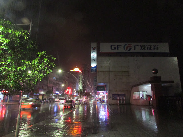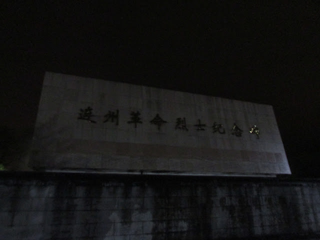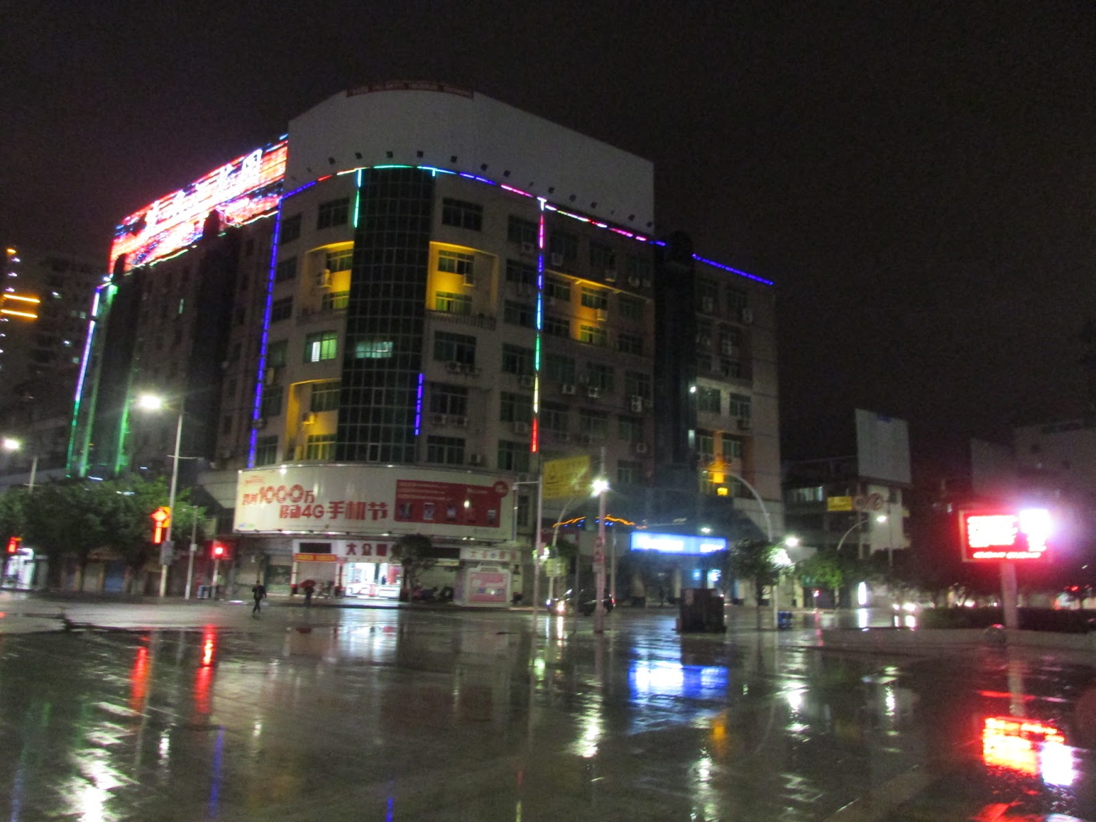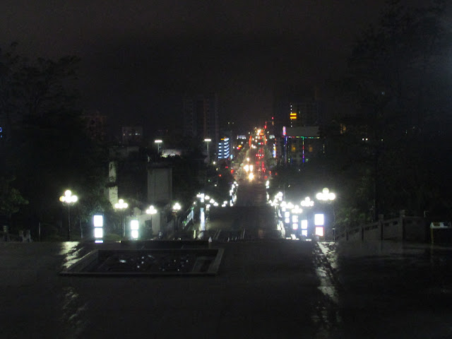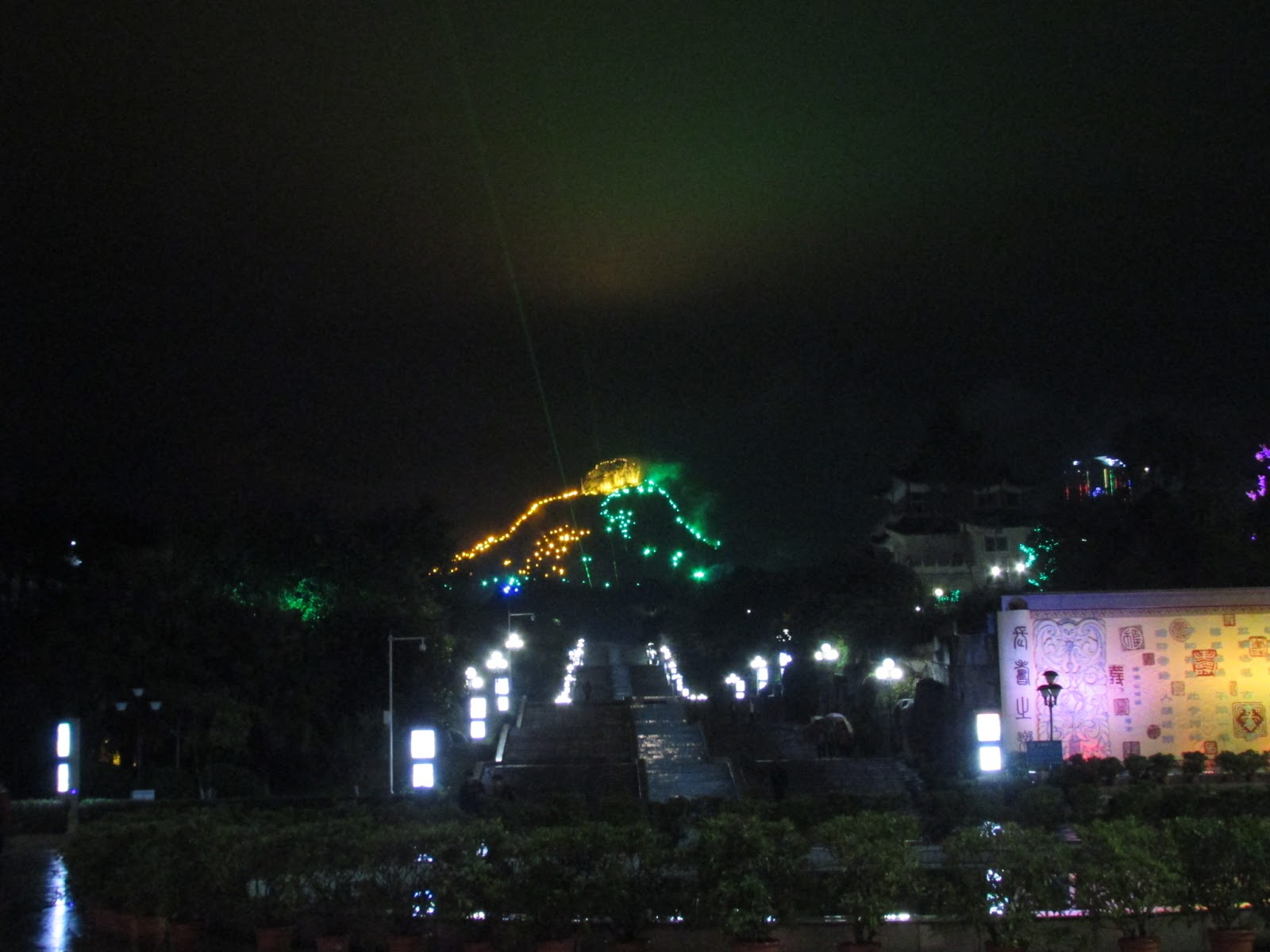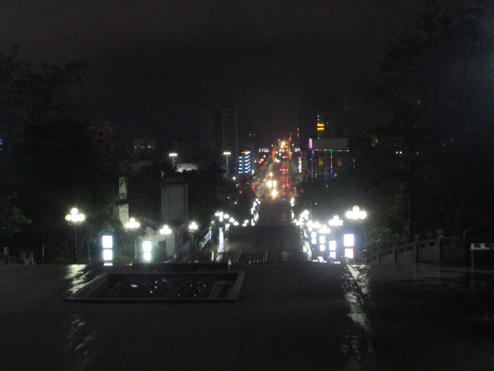 七點半到達大酒店,讓導遊檢查好房間後就「行夜街」,少不了購買一些東西,順道閒逛酒店外的「文化廣場」,廣場旁有座中學及圖書館,至於荷花池裡的大飛機就被拆去了,而高處的發亮之處是「巾峰山」,沿樓梯一直上登,還以為只是要上一百米,不過一直走,離發亮之處還是那麼遠,原來要上約四百米,最後就到革命烈士紀念碑處止步,回望下面的連州大道,路燈密集,算是市內最繁榮的地方了。天氣不好,加上當地人傾向不作夜生活,廣場裡人流非常少。看到廣場內的LED顯示屏,是日雨量超過廿毫米,而且溫度只有約十度,最後在晚上十點十五分才回到房間休息。