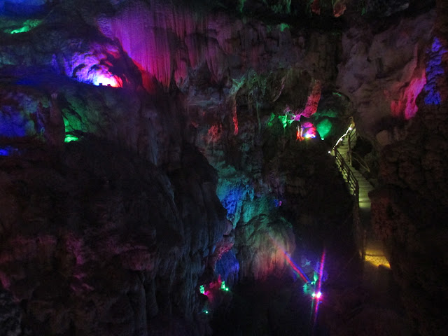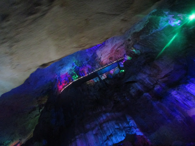 一早起床,看到窗外一片潮濕,已知是日要在雨中遊覽各景點,其實出發前查看天氣,亦一直預報著粵北地區周末會有雨。在酒店旁邊的餐廳享用早餐,未夠九點就到達位於東陂鎮的連州地下河景區,鎮內最著名的特產是臘味。因聖誕節不是內地假期,加上只是周六早上,所以我們是景區全日的第一批遊客。洞內岩石以鐘乳石為主,因遊客量不多的緣故,講解員可以慢慢的介紹洞內的石頭,還指出那頭石像甚麼東西像甚麼人物,但是終歸都是「三分形像、七分想像」,過了一晚,相信一千個人裡面沒有一個還記得石頭像甚麼--除非邊遊覽邊錄音。
