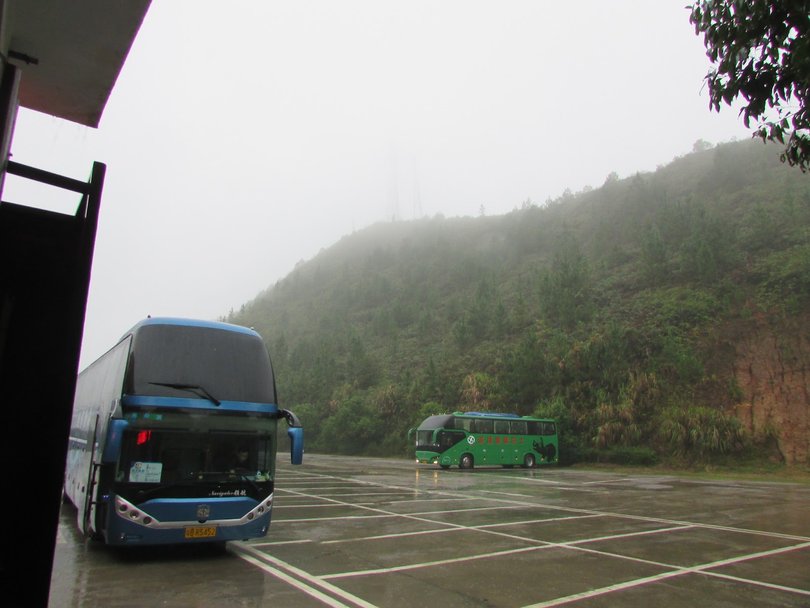 景區裡的小車與旅遊車停車場,或因天雨寒冷的關係,遊人不多,與去年十月時差天共地: