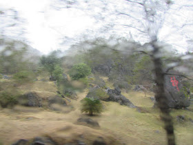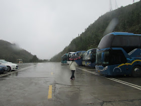 景區裡的小車與旅遊車停車場,或因天雨寒冷的關係,遊人不多,與去年十月時差天共地: