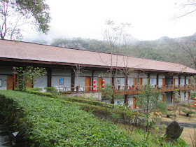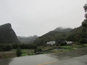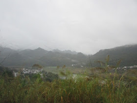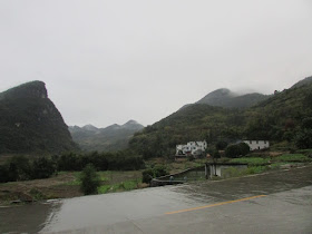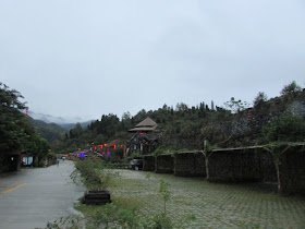 是日行程確是極為鬆動,乘過遊船後離晚飯時間還有近三小時,於是導遊也讓我們決定是否欣賞四點鐘的瑤族表演,表演屬自費,費用為廿元。坳仔前一次才看過,也成少數沒有欣賞的團友。另一車入住景區裡的客棧,所以我們少了「回房休息」這個選項,亦因天氣不好,或要令團友失望了,盤算著如何打發餘下的兩小時。在景區逛遊,更走出景區外的村莊。那裡叫龍潭村,村裡其中一部分已發展成景區(當中包括以前的中學校舍),但位置隔涉下還保留著原始的農村風貌,只是多了幾家村民經營的農家菜館。期間正有農村公交進村載客,有些景區裡的工作人員,下班後乘公交返回市區。村裡亦有舊的糧所、一家小醫院,還有一所廁所,至於廁所裡的環境,當然是意料之內--屬茅廁式設計,進入後十秒內被一股濃烈的臭味包圍,幸好沒見昆蟲飛舞。漫步在農村的田野、河道間,遠方的山頭還有雲海,確實令人心曠神怡。隨著天色開始轉暗,也準備回餐廳晚飯,餐廳裡的菜相當小巧,每道菜都剁得很碎的。