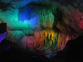 一早起床,看到窗外一片潮濕,已知是日要在雨中遊覽各景點,其實出發前查看天氣,亦一直預報著粵北地區周末會有雨。在酒店旁邊的餐廳享用早餐,未夠九點就到達位於東陂鎮的連州地下河景區,鎮內最著名的特產是臘味。因聖誕節不是內地假期,加上只是周六早上,所以我們是景區全日的第一批遊客。洞內岩石以鐘乳石為主,因遊客量不多的緣故,講解員可以慢慢的介紹洞內的石頭,還指出那頭石像甚麼東西像甚麼人物,但是終歸都是「三分形像、七分想像」,過了一晚,相信一千個人裡面沒有一個還記得石頭像甚麼--除非邊遊覽邊錄音。