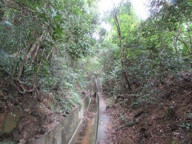 沿彎彎曲曲的貝璐道直降港島徑第三段,半小時裡就到港島徑第三段入口,因此段景觀欠奉之餘亦只是相當平緩的山徑(基本上是繞著田灣山腰而行),所以不如節省一點時間,走捷徑作罷。半小時後穿過香港仔上水塘,又再走半小時的引水道路段,部分位置頗為開揚,,可見黃竹坑、海洋公園一帶的風光。引水道路段越走越荒蕪,後段更有不少野豬出沒的蹤跡,最後就接入一段相當長的樓梯,上聶高信山南麓的布力徑。