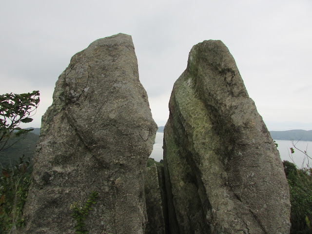 是日天氣一如天文台所料,早上有大雨,中午前後天色轉佳,甚至露出陽光,所以就按原訂計劃遊覽大灘郊遊徑以西的群山崗,尋找涌沙頂附近的珓杯石。本來還想順道連走灣仔半島最北端的棺材角及北潭郊遊徑旁的大輋嶺墩,基於時間及路況問題,所以決定找天再探遊。