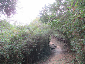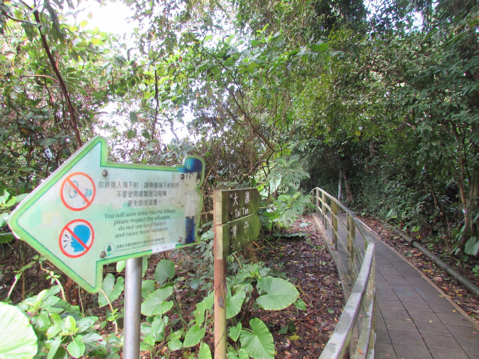 因早上天氣實在不佳,再加上適逢渣打馬拉松與郊聯健步的比賽日,郊遊遠足的人士並不多,平時假日都會泊滿車的北潭涌停車場,是日卻還有不少空位,而全小巴也沒有其他人往海下,而在海下也只有一位露營者上車。一起步,即遇上一隊半百人的親子旅行團,把山徑擠得水洩不通,故只能龜速前行,直至他們進入海洋生物中心為止。