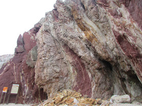 在鬼手海岸大休,欣賞呈煙肉色的岩壁: