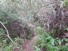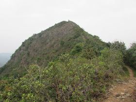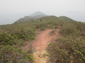 在灌木叢間穿梭,近十一點抵達大嶺的黃竹角墩台,墩台已有近三百五十年歷史,在墩台小休時正有一些遊人剛坐「大飛」過來,在鬼手岩起步往大尾篤,亦有獨行者從後追上,速度更較坳仔快了約一成時間(他八點鐘才起步,當時小巴上載滿往鬼手岩的人)。五分鐘後落海邊,越近海邊斜度越高,有些位置還要抓樹而下,然後就「綑邊」往鬼手岩,不過臨到鬼手岩前被直壁考起了,未知是否風化關係(另外發現鬼手岩上的岩壁有一片大石塌下),似乎變得難走,有幾塊分開了的直壁,沒有明顯的安全踏腳位,結果用了近十五分鐘才通過,回程時也是如此。