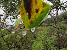 十點鐘在擔水坑村起步,還未起步就感受到頗大的寒風,而村民經營的小攤販全部都沒營業。依小徑上伯公坳警崗,因前一兩天有雨而且非常潮濕,所以有不少位置變成泥濘路,而風力也隨著高度的上升而增強。在海拔不到二百米處,已看到部分植物上的水滴結成冰,同時亦下著一陣帶冰粒的雨。
