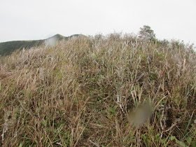 有人想在紅花寨頂大休,這時風力已有減弱跡象,不過對於是日的天氣狀況來說,那裡根本不適宜大休。我們很快的往北走,要穿越一些戰壕之餘還得慎防帶黑冰的石頭,必需步步為營,否則我們要玩免費溜冰了。隨著高度下降,就看見一幅震憾的景象,就是眼前的小樹都被冰封著了,大家都立即留影,不過因正處山脊的關係,不時刮著很強烈的陣風,讓人也站不穩。