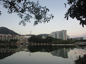 購物村裡有座人工湖: