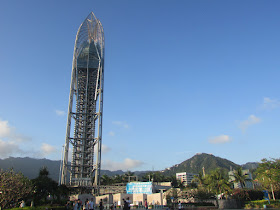 灘上種了很多椰樹,後面是「願望塔」: