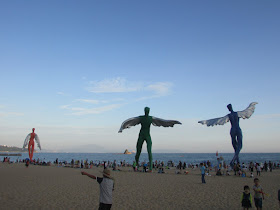 灘上有七尊像飛人般的塑像: