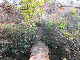 在小村屋對面的水泥徑上上花山,是日選了墳區小徑入村腹。村裡的廢屋近月有人打理過,更有張幾天前的報紙,是日所見還放了個營幕,不過屋裡很凌亂,未知是否有附近村民「歸隱田居」了。轉上石龍拱的支路,上次某遠足活動探路時就錯上那路(原本是過蓮花山廢校),當時植被還是非常茂密,但現在時值冬季,故明顯好走。