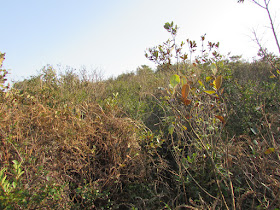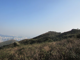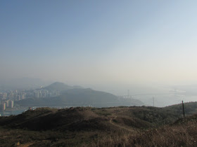 穿過石龍拱北面山崗的石堆小徑,再上石龍拱頂。是日能見度不是太差,港島山頂還可依稀可見,但看不清楚下面的商業大樓群了,吹北風下難免夾雜著祖國工廠的灰霾。沿小徑落蓮花山廢校,再轉附近的小徑過451山頭,然後就落上塘。