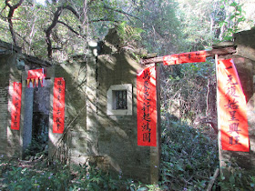 沿谷中小徑過鎖羅盆,村裡不少破屋都貼上新春聯,十分醒目,很有過年氣氛,為荒村帶來生息,而神壇則在拜祭中,相信村民在是日較早時間才來過,只是暫時離開罷了,因為坳仔到達鎖羅盆時並無看到任何村民。