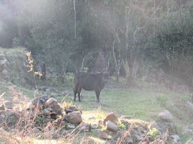 在鹿頸起步,鳳坑、谷埔的士多都無開門,而且兩村裡也沒見村民明顯歸來的蹤影,而在谷埔的田野上,牛群在悠閒的吃草。谷埔村全盛時期達數千人,因交通不便,村民紛紛外遷,現在連過年仍是重門深鎖的景象,感覺真是滄桑。沿山徑過榕樹坳村,廢屋群則看過幾次,但是日就探遊昔日的英軍軍營遺址,據說在八十年代時曾用作囚禁非法入境者(更前身是「培文學校」)。近來有不少南亞「假難民」湧進香城,部分更屬非法入境,所以社會就有聲音,希望政府重新設立禁閉式的難民營,未知把榕樹坳的軍營重建會否一個好選擇呢?