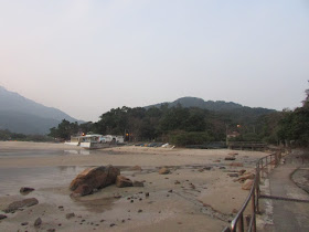 在林中曲折的山徑西走,途經不少溪流,也可見不少巨石。巨石群乃芝麻灣的一大「特色」,尤以近下徑一段為甚,在幾公里以下也能清晰看見半島上的巨石。六點十五分轉落望東灣,望東灣的名字可謂一大經典,因為那海灣正是向西的!不過只是純粹音譯之誤,據說「望東灣」附近海面種滿芒草,而「望東灣」正是位處芒草的東面,所以得名。望東灣村屋數量不多,村裡的一些度假屋也好像缺乏打理,而旁邊的青年旅舍更已荒廢兼長滿雜草。