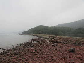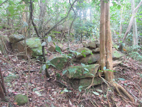 三點鐘到紅石門,正好有一群人划艇上岸(外展活動?),從他們口中得悉正準備在村裡露營。穿過有點破落的堤壩,到上近海邊的密林小徑過烏洲塘。穿過烏洲塘村落花籃坑澗道,裡面有一些廢屋遺址,村民循古道落東面的海灣往沙頭角「趁墟」,不過那裡已荒廢多時,近海邊的一段已被叢林覆蓋。過花籃坑前發現一道沒有引路帶的路口,查過地圖,可能是往紅石門或鹿湖峒的荒僻小徑入口(繞過長窩以南的小山坳),也許在下月或年底時才再細探,同時也留意長窩荒村的遺址。