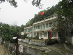 一起步,即見十幾台電單車從雞谷樹下村高速駛出。雞谷樹下及鹿頸的士多,都是業餘車手的聚餐補給熱點,而連接大尾篤之間的新娘潭路,在假日自然也是「飛車」的地方,坳仔到大東北遠足時,幾乎每次都看到車隊在路上高速飛馳。由雞谷樹下經鳳坑至谷埔的水泥村徑走過太多次,對岸的風光也看膩了,只是今日有霧景而已,所以就全速前進,過了上石芽頭的支路時就要開始留意上坳背嶺的路口,因為就在不遠處(大致在小山坳之前)。