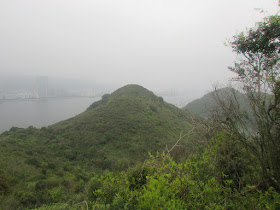 坳背嶺一段相當少人走過,所以路上幾無引路帶,而且途中的密林也是頗茂盛,相信只在年頭植物較少時才可通行。初段路況還算明顯,不過隨著高度上升,植物反而更為茂密,很多小樹枝橫生,要出動樹剪協助。十二時半,到達131米之山頂,可賞沙頭角海及榕樹坳內灣一帶之風光。