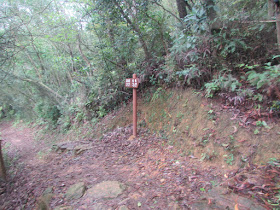 在此處轉右,沿沒有引路帶的小徑上坳背嶺: