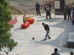 用鞭子打著個大陀螺,不知是習俗、表演還是純粹遊戲呢?