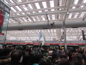 集合時間為九時正,坳仔預料到關口會非常擁擠,故提早了一小時出門。在落馬洲站下車至福田口岸,由於太多人要離境,車站正實施人潮管制,情況堪如春運時大火車站的畫面,又亂又擠,單是排隊出閘就用了四十五分鐘,期間不時有乘客因碰撞問題而口角,尤其是在轉彎處,估計等候出閘的人數高達五千人,而在口岸區域等候的人數總共更起碼超過一萬人,相當可怕,似乎耶穌受難節都例牌變成外遊人的「受難節」了。在是日外遊,相信絕大部分都是迫於無奈的,亦凸顯香城連休日太少的毛病,很多人星期六也要上班,想在周末結伴去個兩日一夜旅遊並非易事。幾經辛苦,在八點四十五分才能出閘並辦理離境手續。幸好過境手續算是順利,半小時就在人海中找到所屬的旗號,不至大遲到,若然遲得太久而未能趕及高鐵班次,也會極感掃興了。