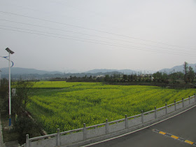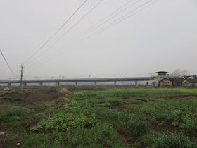 旁邊的農田與高鐵橋,田裡有一些油菜花: