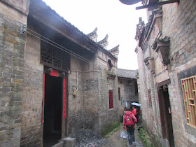 飯後又要乘兩個多小時車往板梁古村,那裡位於永興縣北部近衡陽市的邊界,屬國家3A級旅遊景區,早在元朝時建成。村裡沒被刻意的人工化,是座名正言順的古村落,村民不是姓梁,而是姓劉。板梁村的名字,據說在明朝修建廳堂時,有村民發現屋樑少了一片,而村前河邊正好有片大小及材料完全吻合的木板,修建工程才得以順利完成,故村名就叫做「板梁」。穿過「接龍橋」入村腹,在裡面的石磴古道及密麻麻的古廳堂屋舍間轉來轉去,很易使人迷路,故大家也不敢與前面的團友距離太遠。那裡一些屋子還有年邁老人及小孩,分別在洗菜及嬉戲,僅在春節時才有青莊者回老家團年,裡面仍是一片山區農家的景象,感覺相當滄桑,時空像是停留在幾十年前未改革開放的年代般。