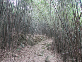 用巨石建成的田基,而不足一米處有個竹林,走在其中有尋幽探秘的感覺: