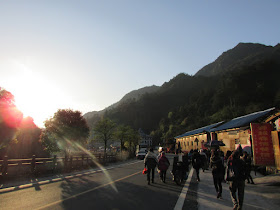 五點半離開風景區,再步行近半小時就到「瑤園酒店」餐廳晚飯。飯後到房間稍作整頓,七點四十五分往約一公里外的酒店泡溫泉,全車只有兩人不去泡。溫泉分為室內及露天區,共有廿個池左右,其中有個池只作裝飾,結果有團友差點泡進去,最後感到水溫很冷,而馬上「上水」。十點左右回到酒店休息,路上無路燈,要加小心,不過農村地方光害當然沒有城市般為重,抬頭一看,滿天繁星。